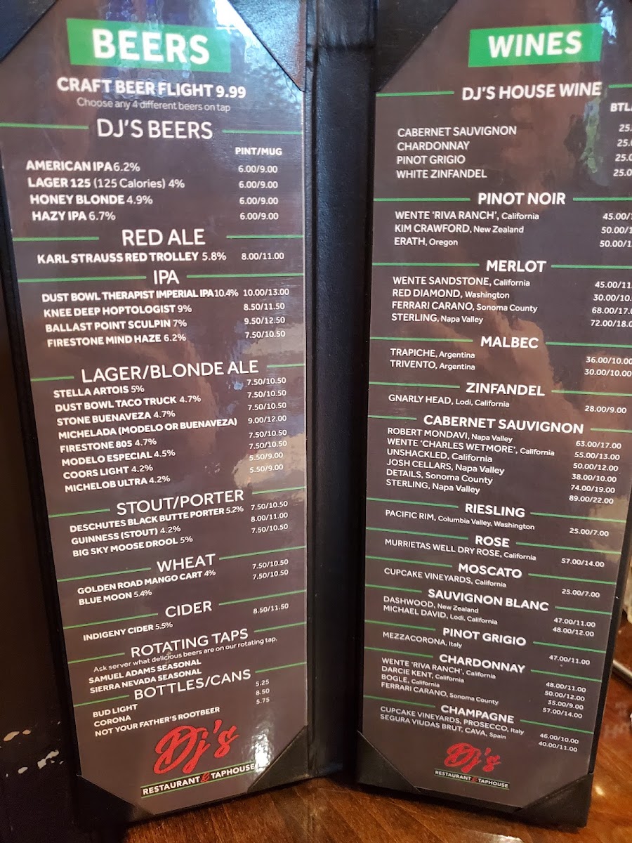 Dj’s Restaurant & Taphouse Menu